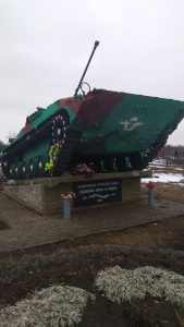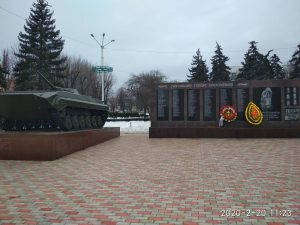Как символ непокорённости, силы духа и сплоченности воинов-освободителей, как памятник их великому мужеству воздвигнута на постамент бронемашина с табличкой «Защитникам Луганской земли, отдавшим жизнь за Родину».
