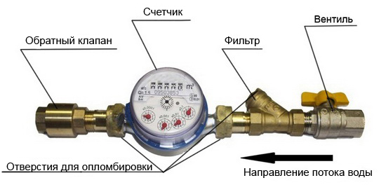 При установке водомера абоненты, проживающие в многоквартирных жилых домах, обязаны соблюдать схему монтажа водомера.