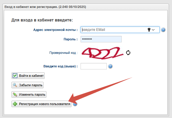 3. Нажмите кнопку «Регистрация нового пользователя».