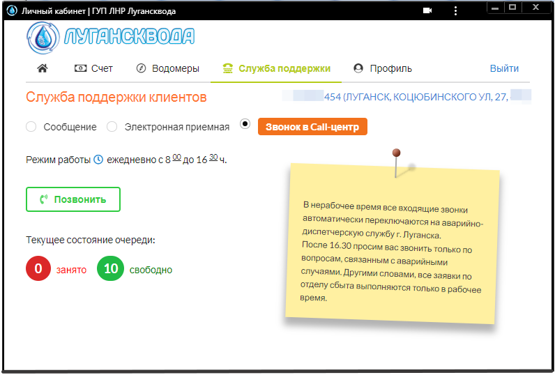 Если Вы находитесь за пределами ЛНР и не можете позвонить ни по одному из предложенных телефонов, звоните из личного кабинета в информационно-справочный центр.